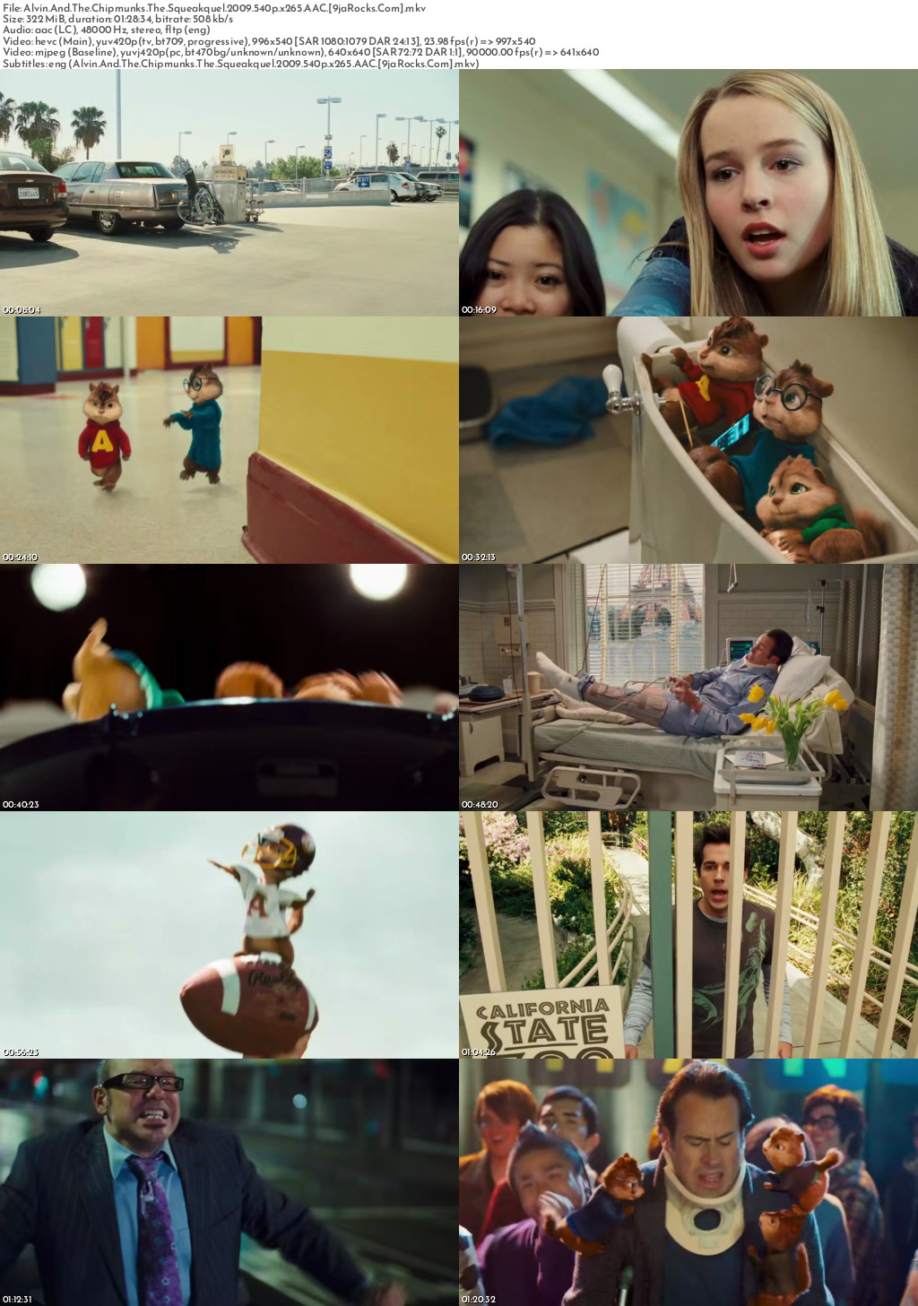 Filename: Alvin.And.The.Chipmunks.The.Squeakquel.2009.540p.x265.AAC.[9jaRocks.Com].mkv