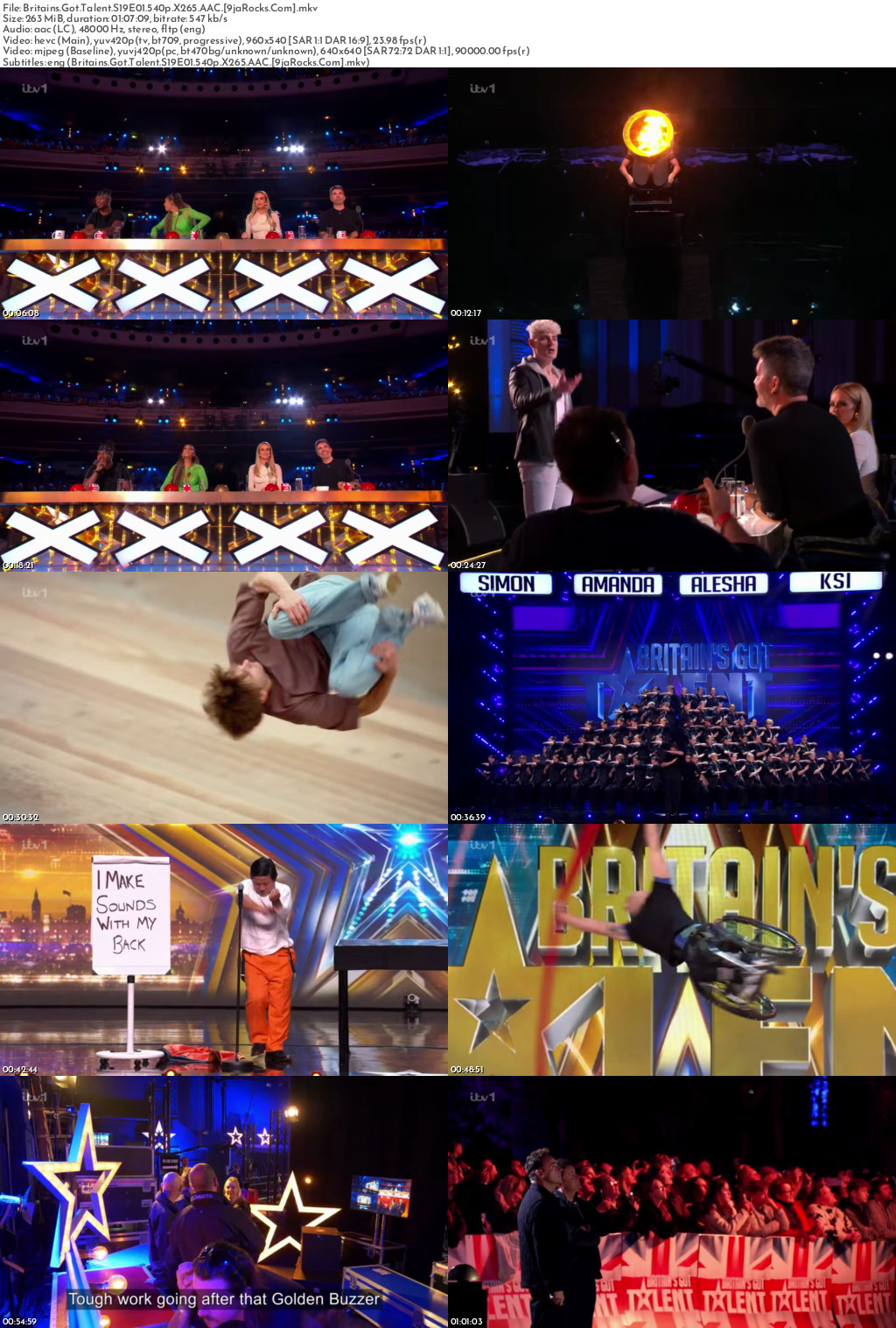 Filename: Britains.Got.Talent.S19E01.540p.X265.AAC.[9jaRocks.Com].mkv