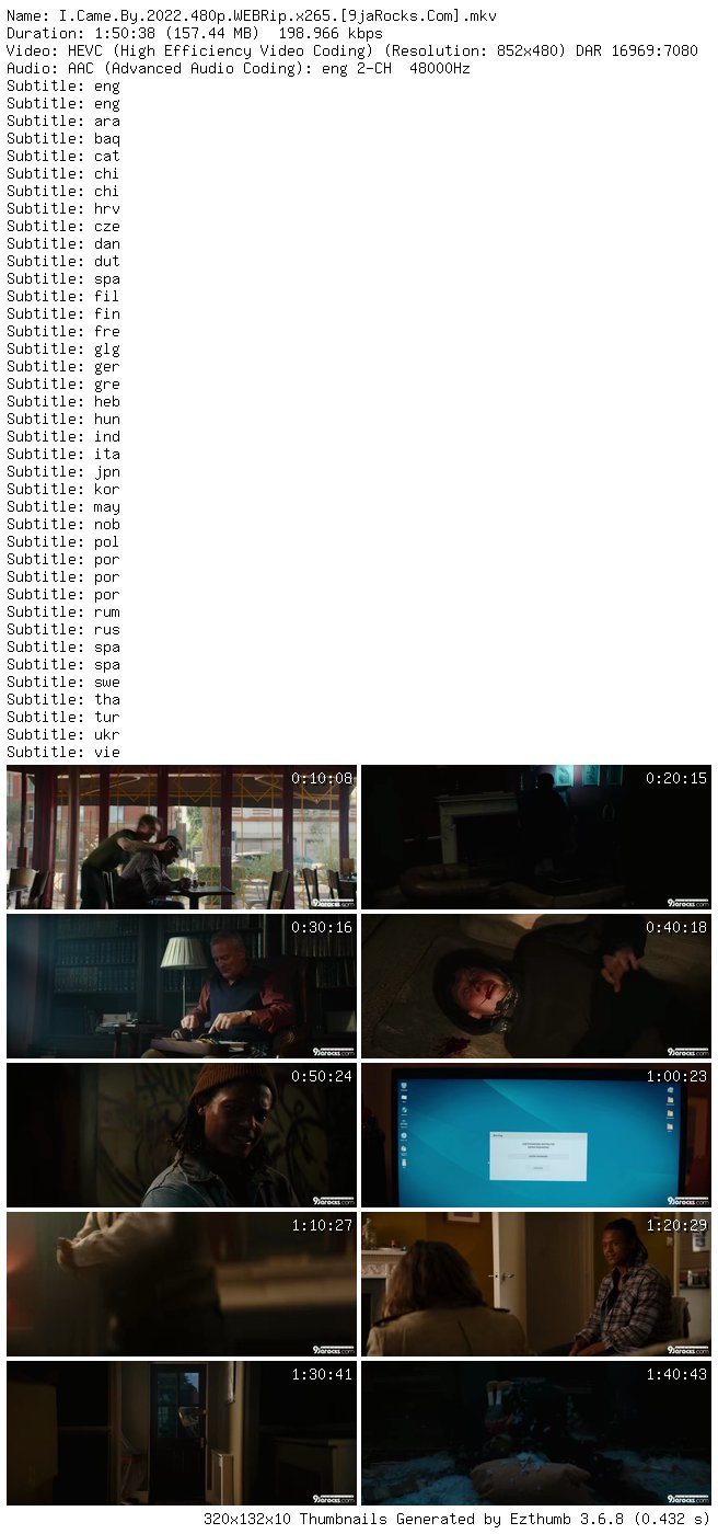 Filename: I.Came.By.2022.480p.WEBRip.x265.[9jaRocks.Com].mkv