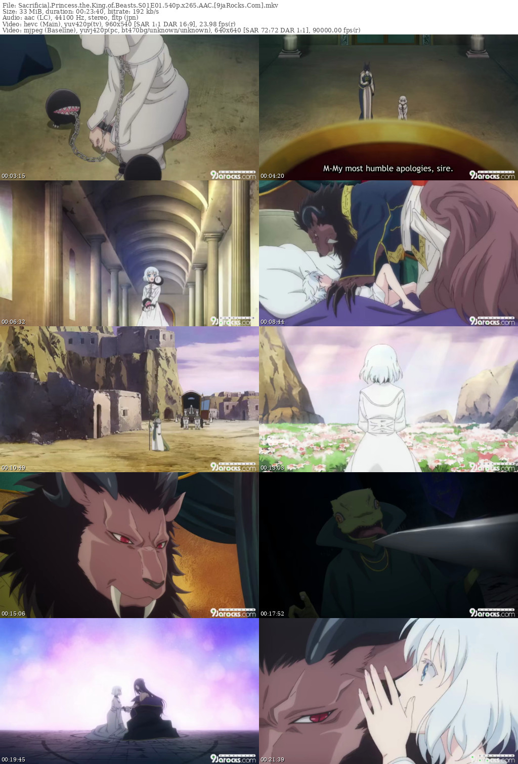 Filename: – Sacrificial.Princess.the.King.of.Beasts.S01E01.540p.x265.AAC.[9jaRocks.Com].mkv
