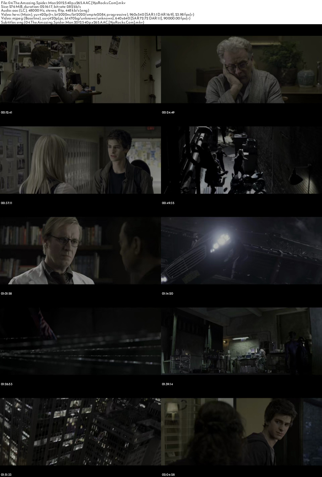 Filename: 04.The.Amazing.Spider.Man.2012.540p.x265.AAC.[9jaRocks.Com].mkv