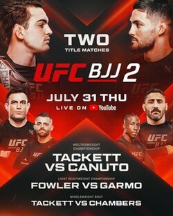 UFC BJJ 2: Tackett vs. Canuto was a submission grappling event produced by UFC Brazilian Jiu-Jitsu (UFC BJJ). The event was held at the UFC Apex in Las Vegas, Nevada, United States, on July 31, 2025