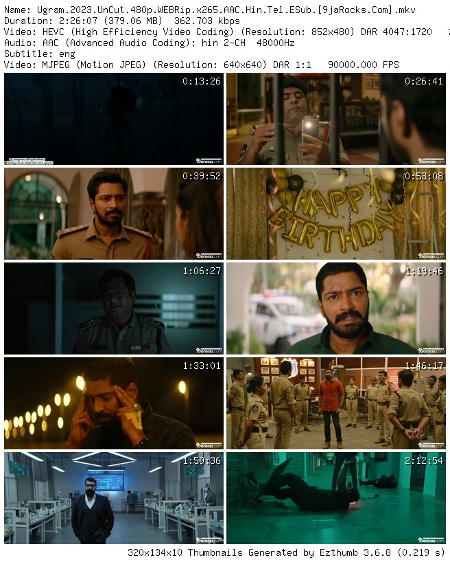 Filename: Ugram.2023.UnCut.480p.WEBRip.x265.AAC.Hin.Tel.ESub.[9jaRocks.Com].mkv